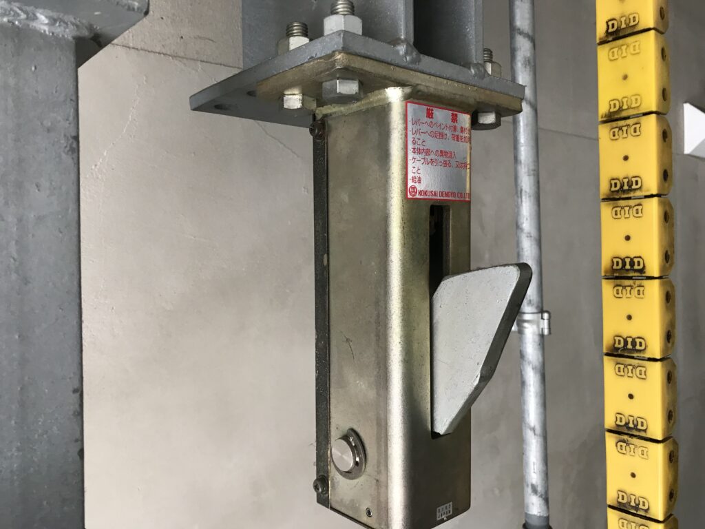 リミットスイッチは小さな部品ですが、機械式駐車場にとって非常に重要な部品で、壊れてしまうと停止位置がずれることによりパレットが傾き、車や装置の損傷や命に関わる重大事故につながりかねないため、しっかりとメンテナンスを行っています。