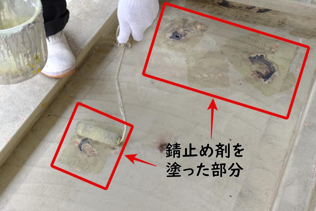 必要な部分に錆止め剤を塗り、次の下塗りへと移ります。