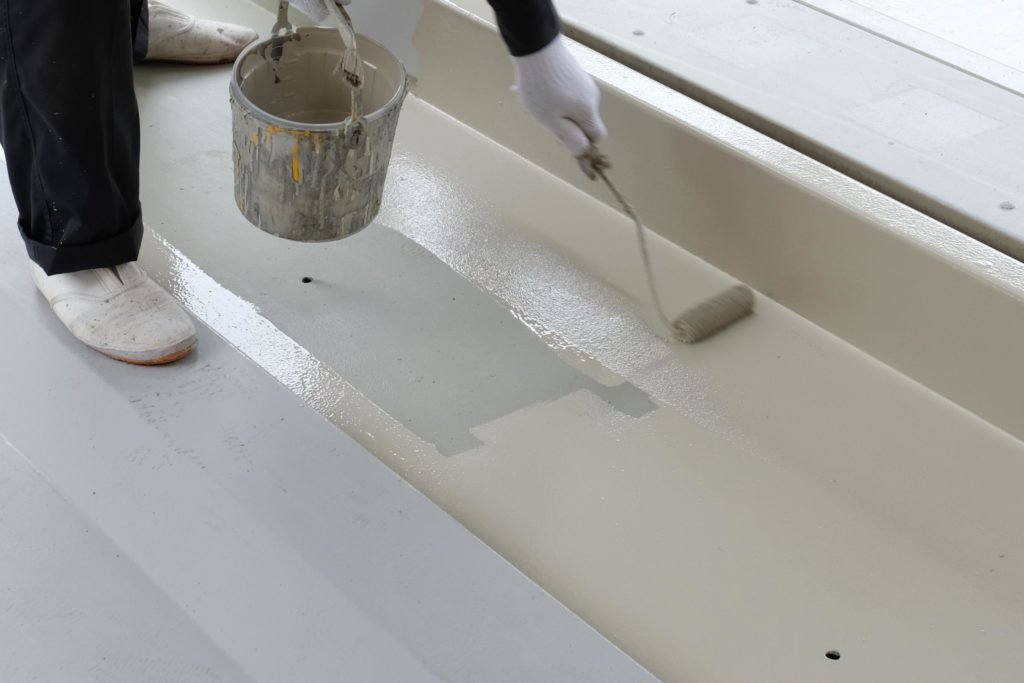 中間検査に問題がなければ、ケレンした部分に錆止め剤を塗ります。 錆止め剤を塗ることで、ケレンで取り切れなかった微細な錆があった場合にも、無効化して新たに錆が発生しないようにします。